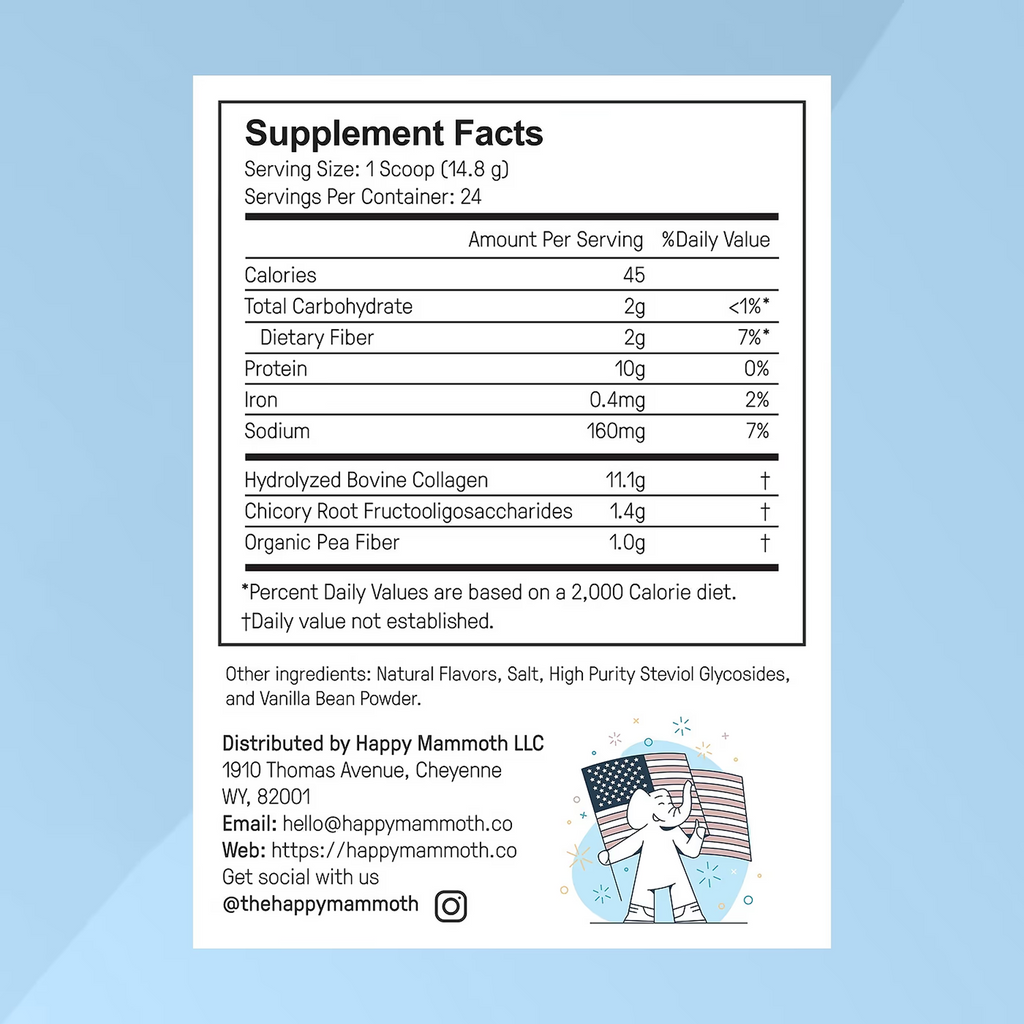 Prebiotic Collagen Protein has a natural vanilla bean flavor that has been praised by hundreds of Happy Mammoth customers. It’s not overpowering, but it gives any drink that unmistakable taste of homemade desserts.
